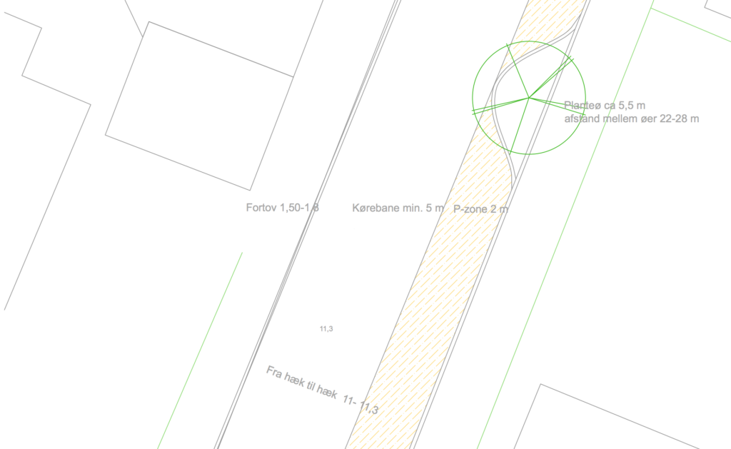 Fortov (180) – vej min.(500) – parkeringslommer (200) fortov (180)